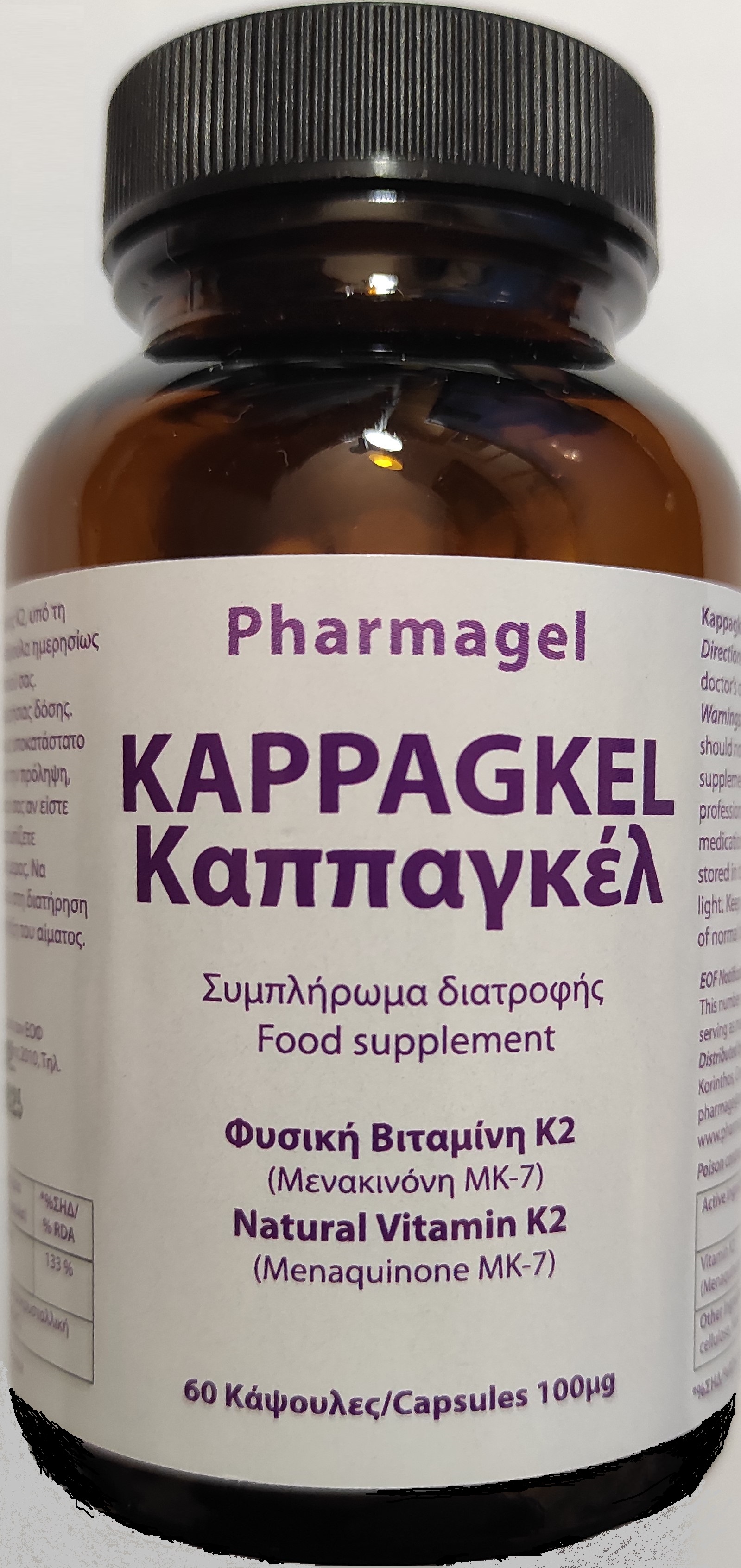 Βιταμίνης Κ2: Χορηγείται η φυσική και όχι η συνθετική βιταμίνη Κ2 (μενακινόνη MK-7) που υπάρχει στις κάψουλες Kappagkel των 100μg στη δόση της μιας κάψουλας, πρωί και βράδυ με το φαγητό.